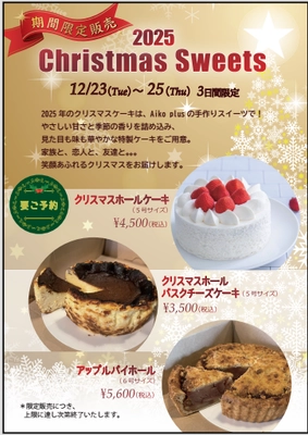 オールディダイニング「Aiko plus(アイコ プリュス)」が クリスマススイーツ&年越しキッシュのご予約受付開始!