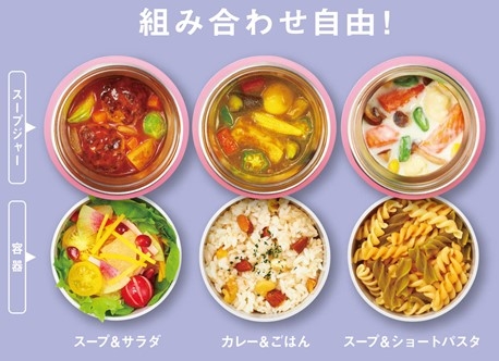 具だくさんスープにご飯ものの定番ランチから、スープジャーにスープを、容器にサラダを入れたヘルシーランチや、またスープジャーにソースをと容器にパスタを入れたパスタランチなど、様々な組み合わせで、手作りランチ生活をお楽しみください。