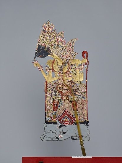 水牛の革に細かい透かしと鮮やかな彩色を施す。ブトロ・グルはヒンドゥー教の最高神シヴァに当たります。