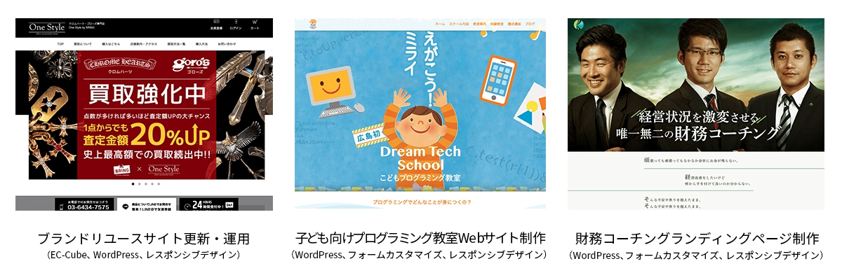 アプリ・WEBサービス・業務用システムの開発実績が豊富です。そのほかにもLaravel(PHPフレームワーク)などを用いた受注システム、WordPress以外のCMSのサイト制作なども承っております。
