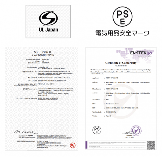 本製品は国際機関にて試験を実施し、5回のスチームで99.999%の除菌率が証明されています。