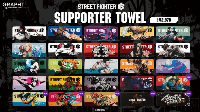 「POP UP STORE in KOTOBUKIYA」の開催に合わせ、『サポータータオル』にエドモンド本田、リリー、キンバリー、ダルシムの4種とロゴ2種を追加。『サポータータオル』は今回のラインアップ追加により、初期プレイアブルキャラクターとYear 1追加キャラクター、Year 2追加キャラクターのベガを含めた23キャラクターに、ストリートファイター 6のタイトルロゴ2種を加えた全25種展開となります。