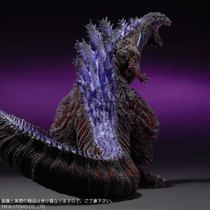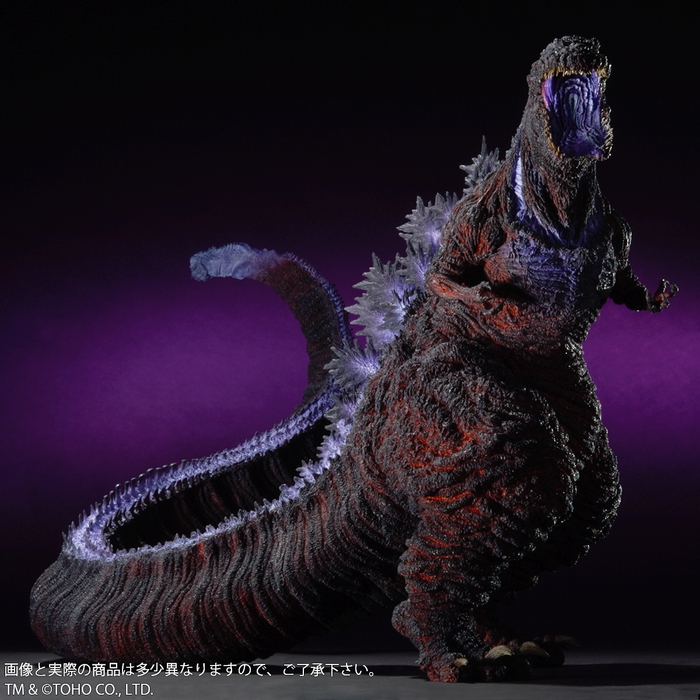 特徴的な長い尻尾や体表の凹凸、不均一に生えた鋭い歯など劇中のイメージを細部に至るまで忠実に再現。「ショウネンリック限定版」では、紫色の塗装と下顎の開いた頭部パーツが付属し、パーツを差し替えることによって、劇中で印象的だった放射線流発射シーンを再現できます。また特典なしの「通常版」も一般小売店にて同時展開予定です。