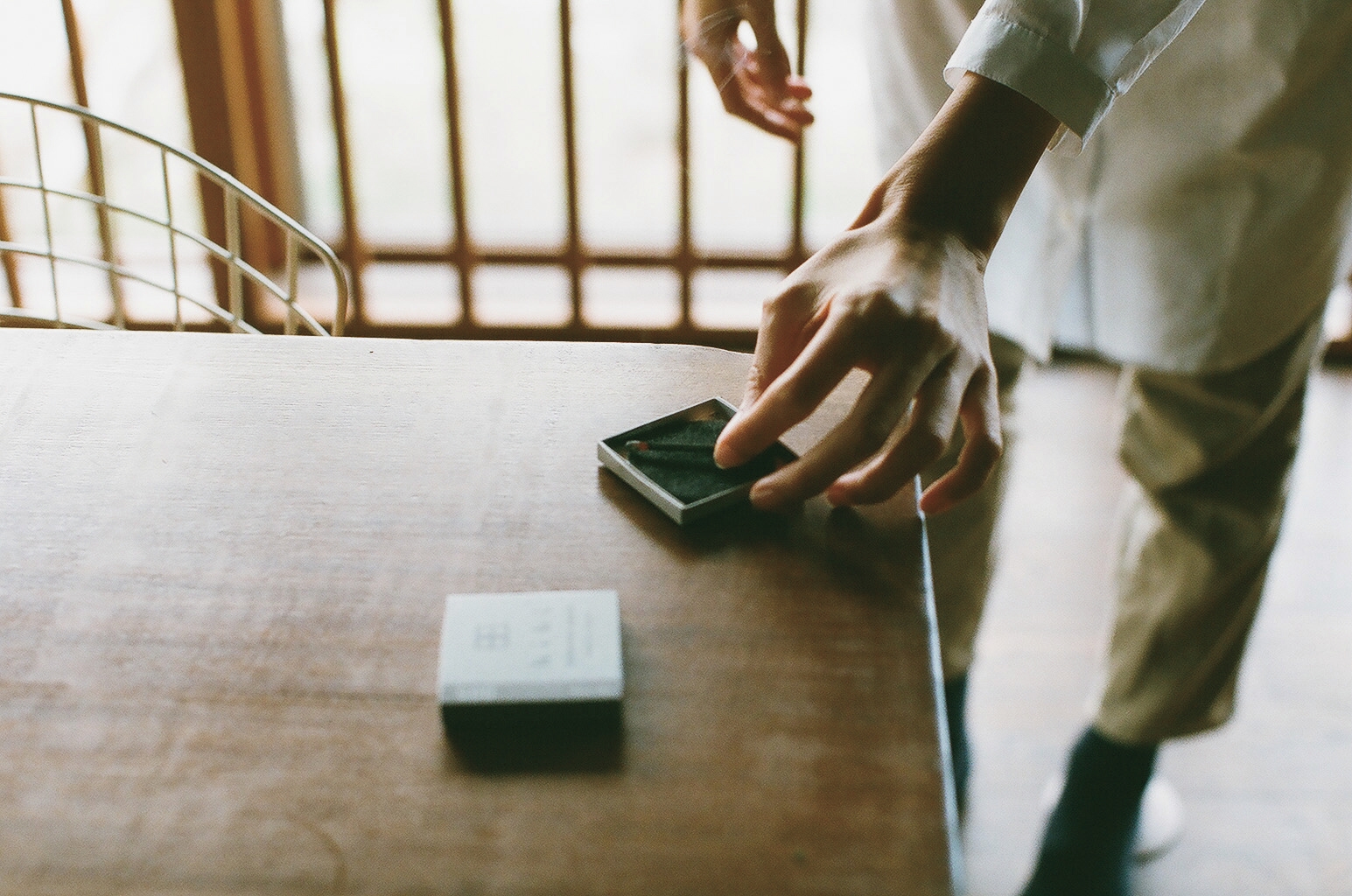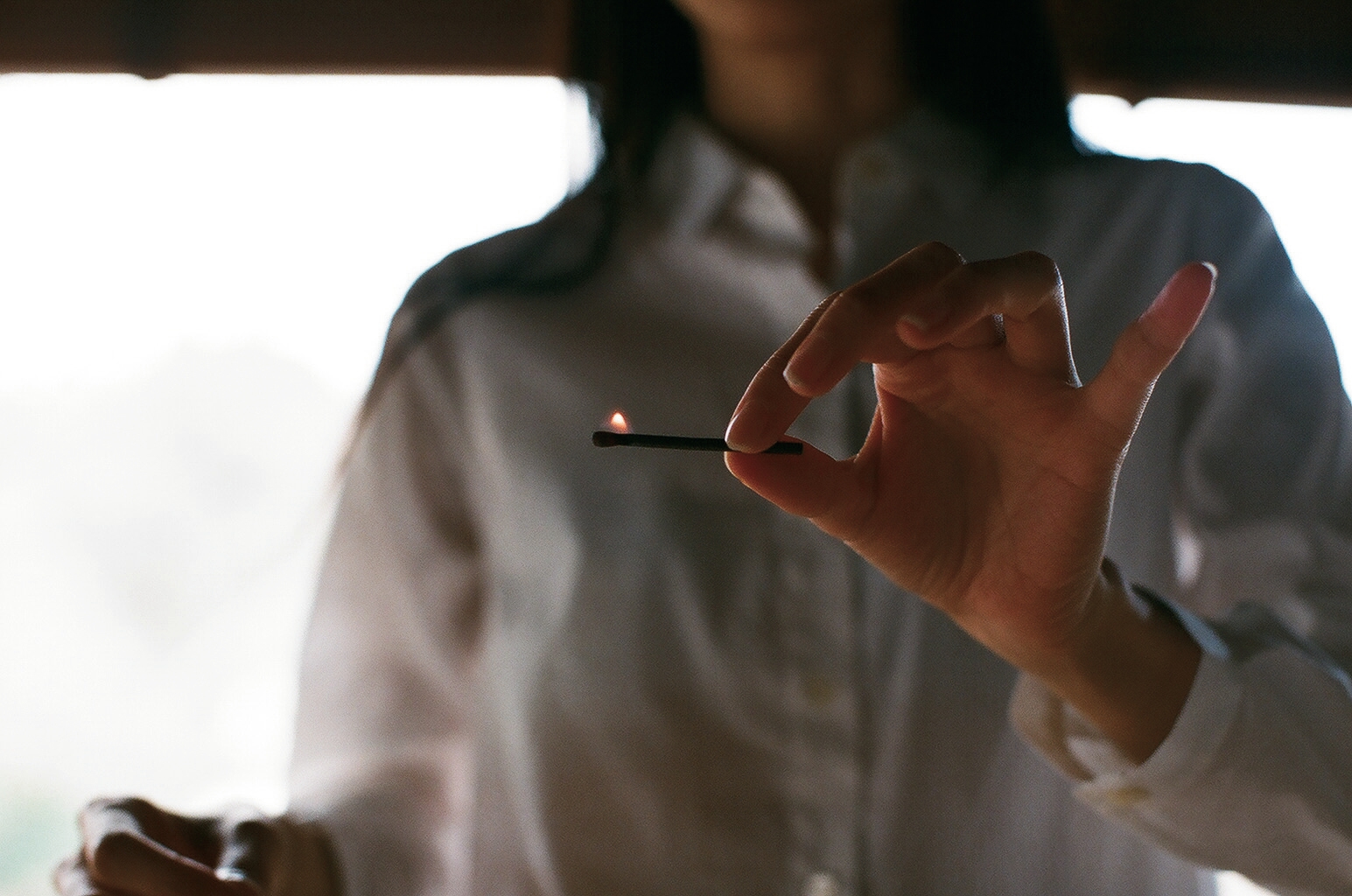 兵庫県播磨地方を拠点に、マッチ製造の長い歴史を持つ「神戸マッチ株式会社」と、線香の一大産地・淡路島で革新的なものづくりを続ける老舗「大発株式会社」が出会い、約3年間の開発期間を経て、2015年4月にデビュー。「マッチのように擦って火をつけるお香」というユニークさは、擦っても折れにくい強度と燃焼性を両立させるという、難易度の高い技術によって支えられています。