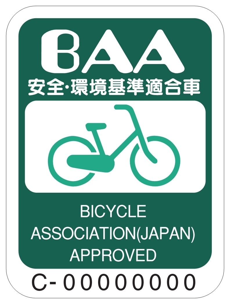 BAAマークは、一般社団法人自転車協会が制定し、同協会が定める自転車安全基準に適合した製品に貼られています。BAAマークの自転車安全基準は全部で約90項目もあり、安全・安心な自転車の目印として認知されています。