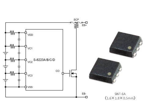 2~3セル用リチウムイオン電池セカンドプロテクトIC 「S-8223A/B/C/Dシリーズ」を発売