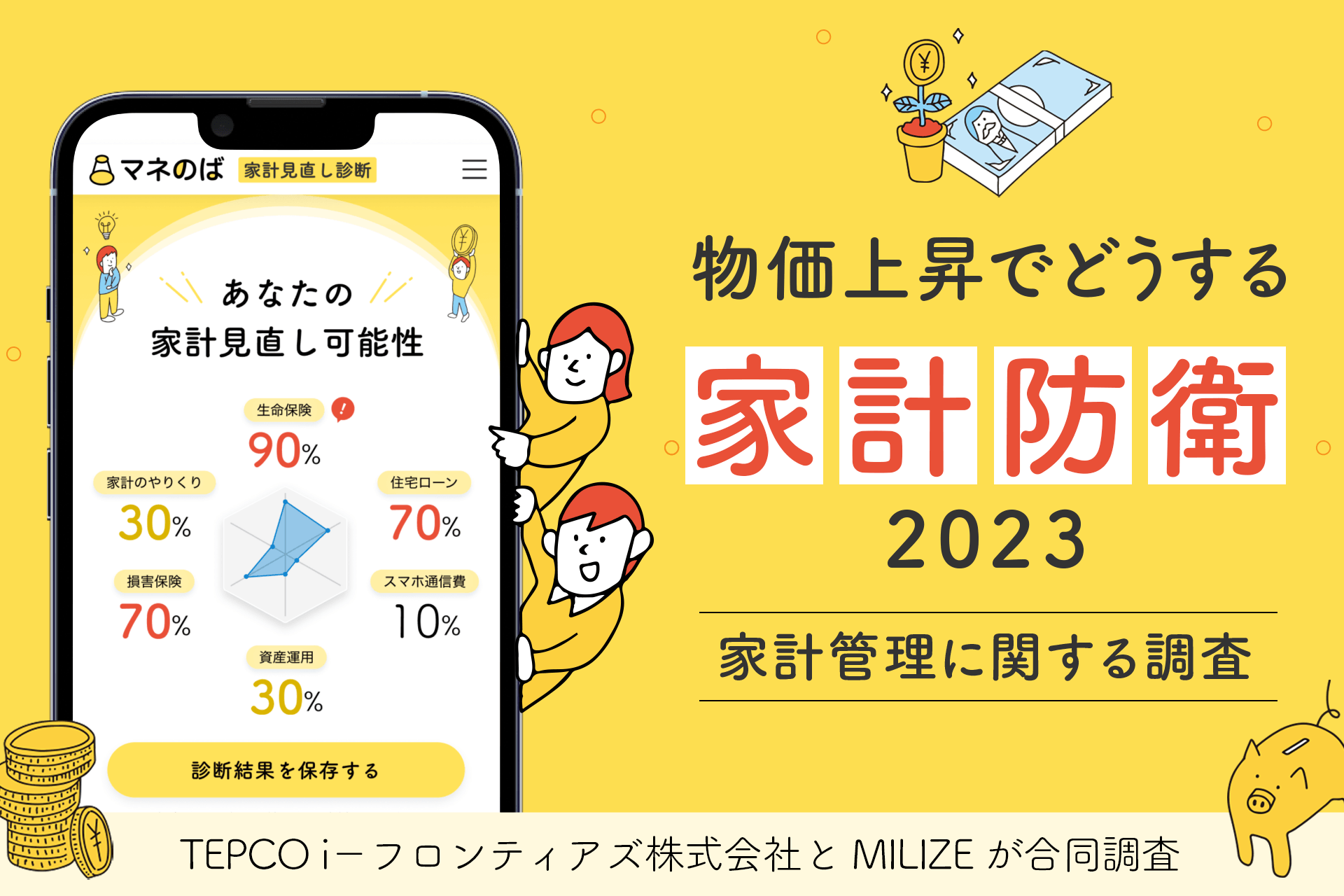 TEPCO i-フロンティアズ株式会社(代表取締役社長:菊池 英俊)と株式会社MILIZE(代表取締役社長:田中 徹)は合同で、2023年2月7日~2月8日の2日間、20~59歳の男女2,000名(一人暮らし未婚者、既婚者)に対し、「家計管理に関する調査」を実施しました。