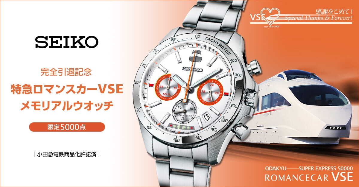 “白いロマンスカー”として親しまれた 特急ロマンスカー・VSE(50000形)の完全引退を記念して セイコーとコラボしたメモリアルウオッチが登場!