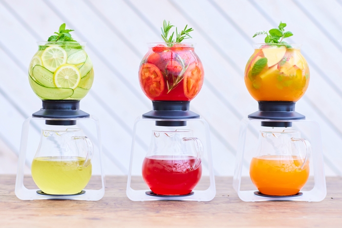 アグリガーデンではハーブの他にも様々な野菜を育てていることにちなみ、畑の野菜をイメージした3種類のオリジナルベジハーブティーを提供。胡瓜やミントを合わせたジャスミンティー、トマトやローズマリーを合わせたハイビスカスティー、人参やオレンジを合わせたカモマイルティーが楽しめます。さらに気に入った香りのハーブを摘んで、好きなハーブティーに添えて飲むこともできます。