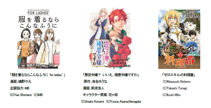 「服を着るならこんなふうに for ladies’」、「悪役令嬢? いいえ、極悪令嬢ですわ」「ゼロスキルの料理番」など、毎日が楽しくなりそうな豪華ラインナップに注目!