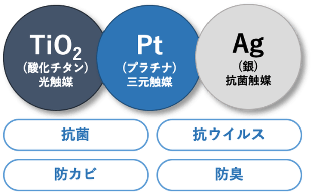 セラフ榎本が取り扱う「抗菌・抗ウイルスコーティング」とは、光触媒(酸化チタン)・銀(Ag)・プラチナ(Pt)の独自配合により菌・ウイルスを持続的(1年間)かつ強力に分解・不活化するコーティングです。臭いもなく、金属や布地への腐食性もありません。安心安全の日本製で人にも全く無害です。物理的に菌・ウイルスを分解・不活化するため、近年問題になっている薬剤による耐性菌を発生させる恐れがありません。