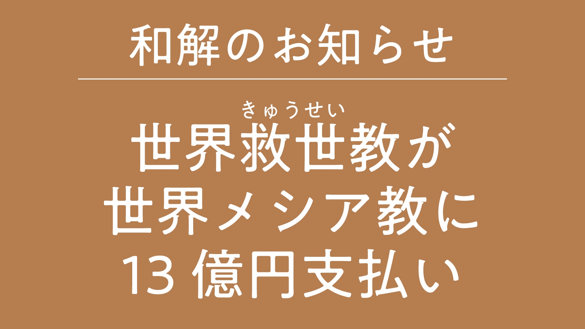 和解では、世界救世教は当教団に対し、解決金として13億円を支払うこと、世界救世教から分与された物件は、世界救世教に返還する必要がないことなどが合意されました。