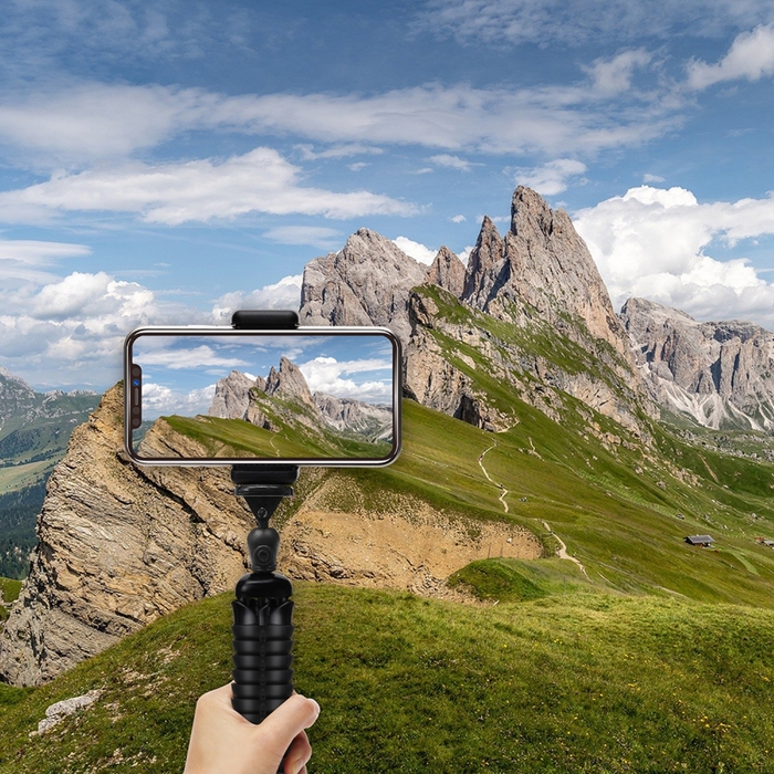 本体幅60~85mmの携帯電話及びスマートフォン/コンパクトデジタルカメラなどに対応した自由自在に変形するフレキシブル三脚