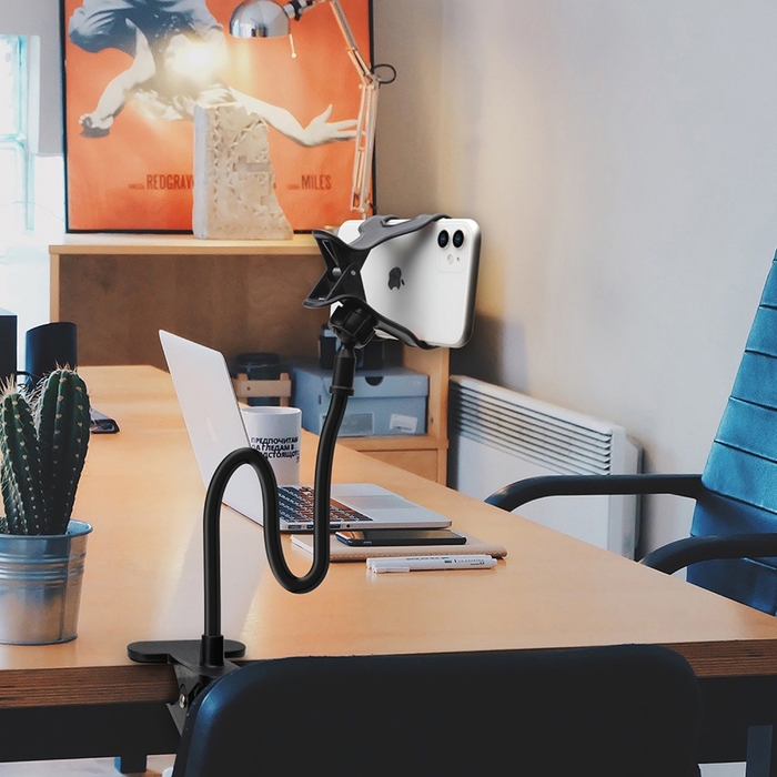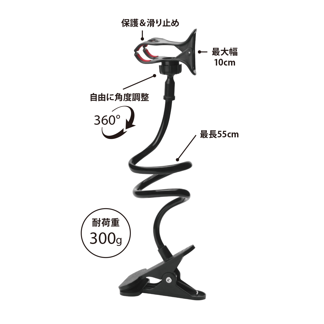本体幅100mm・厚み10mm以下のスマートフォンに対応した自由自在に変形するフレキシブルクリップ