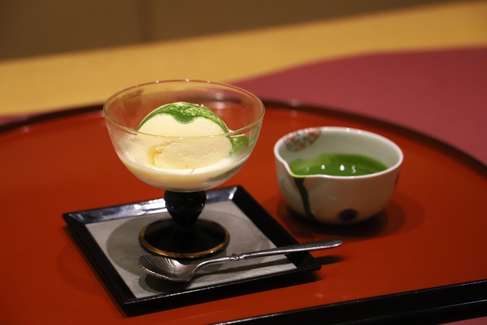 甘味箱には季節のデザートが付いていますが、冬メニューでは抹茶アフォガードに変更。新鮮な生クリームと良質な抹茶が織り成す絶妙なバランスで、ほんのり苦みを感じながらも甘さが広がります。