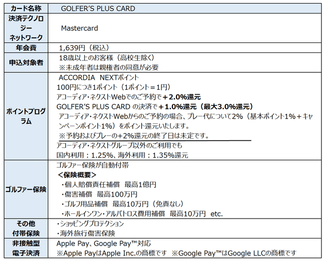 また、万が一の時に安心なゴルファー保険が自動で付帯、高速道路のETC利用でもポイントがどんどんたまる“すべてのゴルファーにとって”プラス”な一枚です。