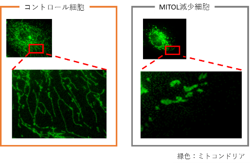 図4.MITOLが減少した細胞のミトコンドリア断片化