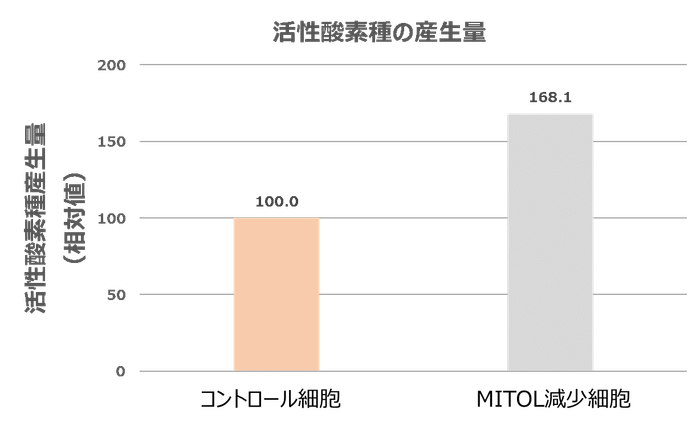図5.MITOLが減少した細胞の活性酸素種産生量の上昇