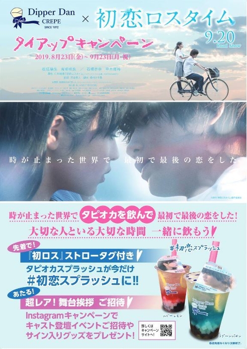 クレープチェーンとして売上日本一(富士経済調べ)の「ディッパーダン」 を展開している株式会社オレンジフードコート (本社:東京都江東区、代表取締役:内田 和明)は、 2019年8月23日(金)より映画『初恋ロスタイム』タイアップキャンペーン を開催いたします。