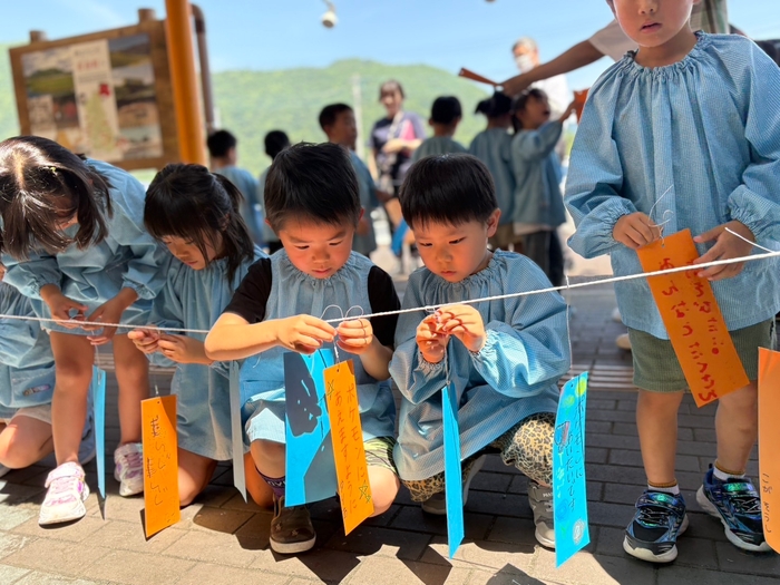 『九州筑豊ラーメン』ブランドのチェーン展開や食材の卸売りをおこなうワイエスフード株式会社(本社:福岡県田川郡香春町鏡山552-8/代表取締役社長 小川 光久 以下、当社)は、地域交流活動の一環として「山小屋 創業店」(福岡・田川郡香春町)にて社会福祉法人勾金福祉会 勾金(まがりかね)保育所(田川郡香春町高野767‐2)の園児23名による七夕の飾りつけなどを行なう七夕イベントを実施しました。
