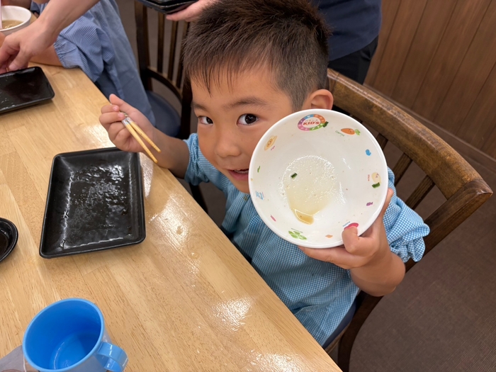 美味しそうに食べる園児の顔がとても印象的で、ラーメンをお替りしたりスープまで飲み干していました!