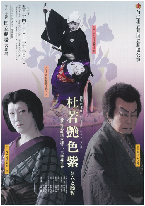 劇団前進座(東京都武蔵野市、理事長:藤川矢之輔)主催、前進座五月国立劇場公演『杜若艶色紫ーお六と願哲ー』が2022年5月14日 (土) ~2022年5月23日 (月)に国立劇場 大劇場(東京都千代田区)にて上演されます。チケットはカンフェティ(運営:ロングランプランニング株式会社、東京都新宿区、代表取締役:榑松 大剛)にて発売中です。