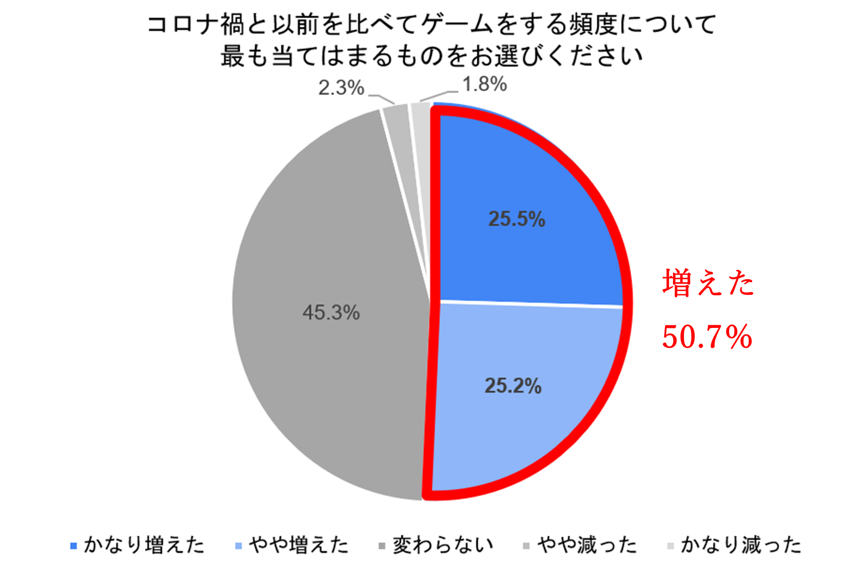- コロナの影響によってゲームプレイの頻度が増えた人は5割(50.7%)