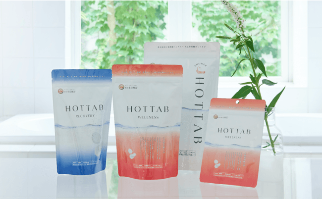 HOT TABを入れた重炭酸泉のお湯の柔らかさ、透明感をヒントにパッケージを一新しました。
