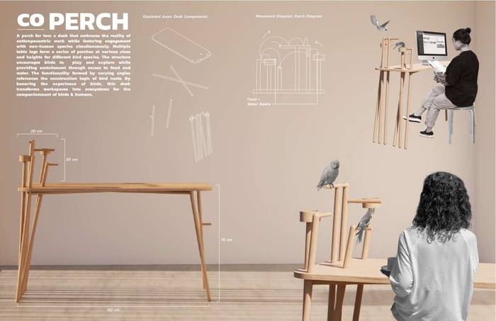 現代のDEI(ダイバーシティエクイティインクルージョン)の時代にどのような家具をデザインしたらいいか、について動物という言葉を借りテーマを設定した中、最優秀作品は「働く場所にも動物がいていいのではないか」という視点、単にペットのための家具というだけでなく、働く場所そのものの在り方も見直す必要性を感じ、リモートワークが広がり、環境を大切にする価値観が重視される中で、時代の流れと新しい価値観を、見事に家具という形に昇華させた素晴らしい作品だったと思います。