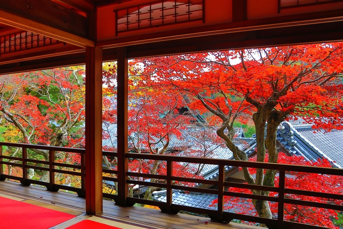 毎月17日に限定公開している上書院を、紅葉ウイーク期間中は毎日特別公開します。上書院は天皇家・公家や限られたお客様のみをお通しする特別な間。戦前に古都百庭として選ばれた同所から眺める名勝庭園(浄土苑)の紅葉は、その美しさから数多くのVIPに愛されました。京都を取り上げたCM製作スタッフも「不覚でした・・・。」と絶賛した上書院は足を運ぶ価値あり。