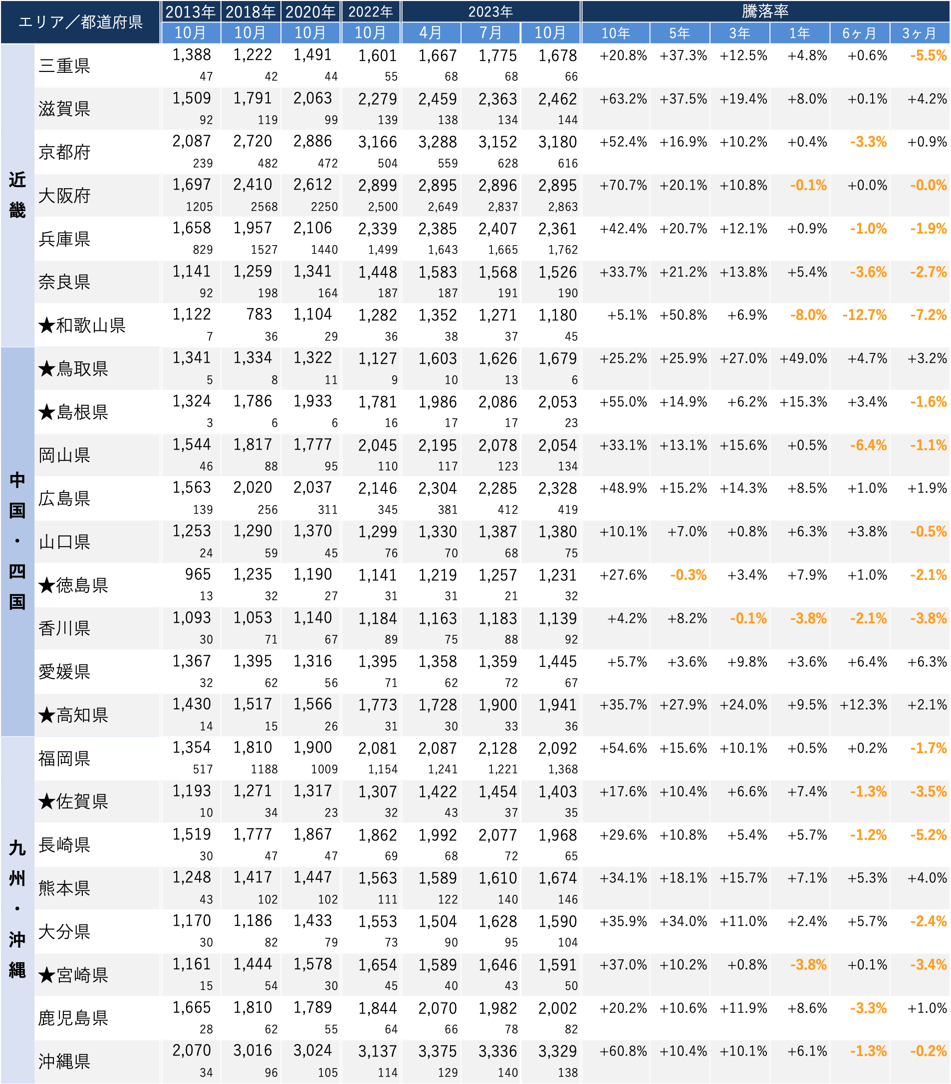 ※2023年10月の件数が50件未満の県については、算出根拠となるデータ数が少ないため★をつけて掲載。