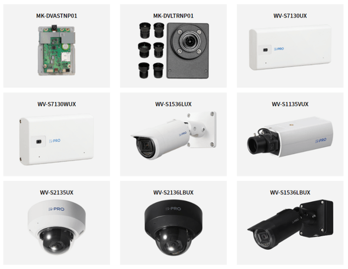▼「VP骨格検出アプリケーション」が搭載可能なi-PRO製AIカメラ(2022年10月時点)