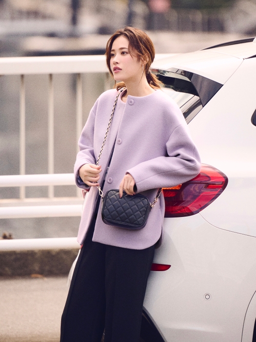 肩と身頃をリラックスした適度なゆとり感をもたせつつ、カジュアルすぎないきれい目シルエットに拘りました。前後差を付けた深めの脇スリットがポイントで、横から見ても抜け感のあるデザインが印象的。ふっくらとした温かさのある着心地が特徴です。