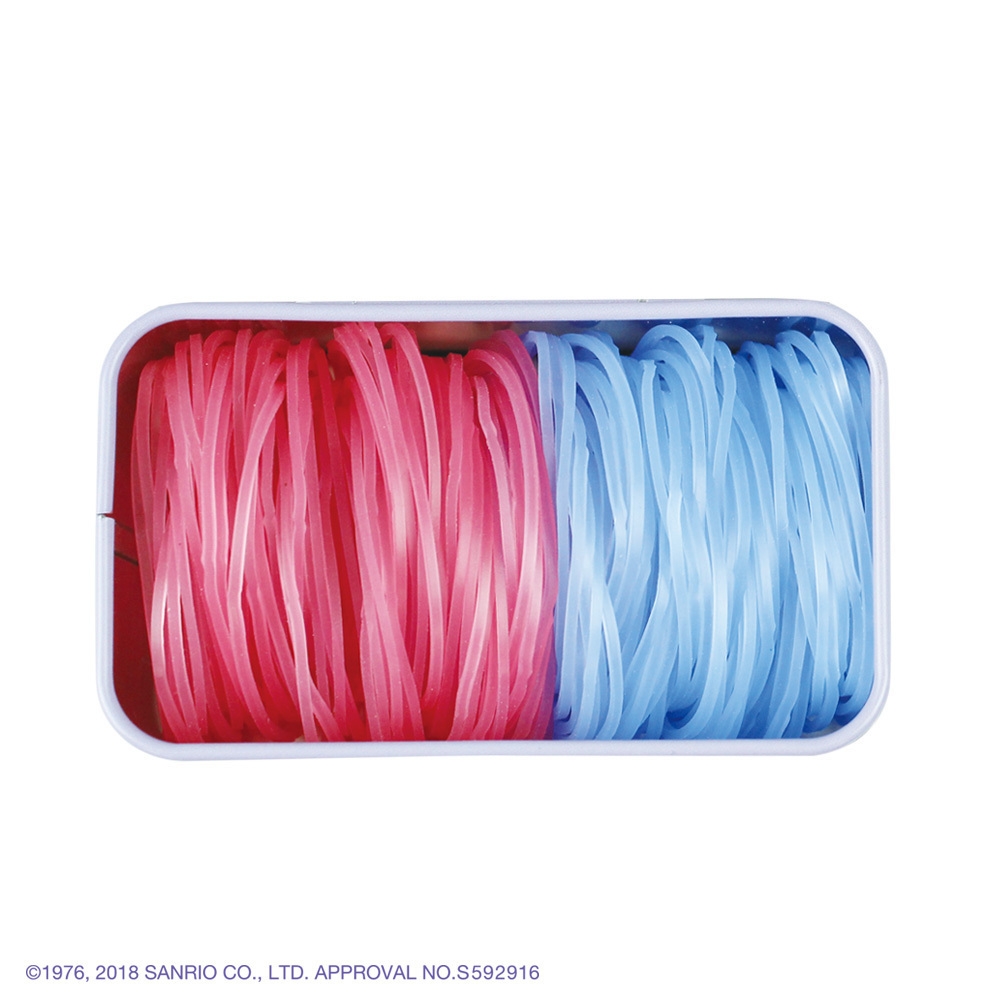 『オーバンド キキ&ララ缶』のなかには、キキ&ララらしい優しい色味の透きとおったキレイなピンクとライトブルーの2色の輪ゴムが入っています。