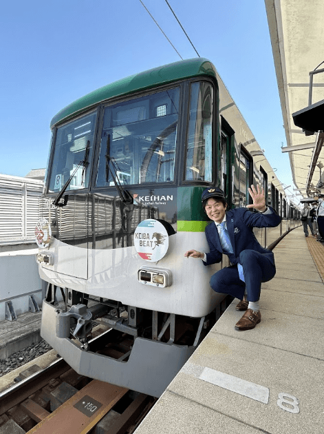 淀屋橋駅発 臨時急行淀行き「競馬BEAT号」は、特定のタイミングで関西テレビ 岡安譲アナウンサーほか4名が行先案内と競馬の魅力や京阪沿線を紹介します。
