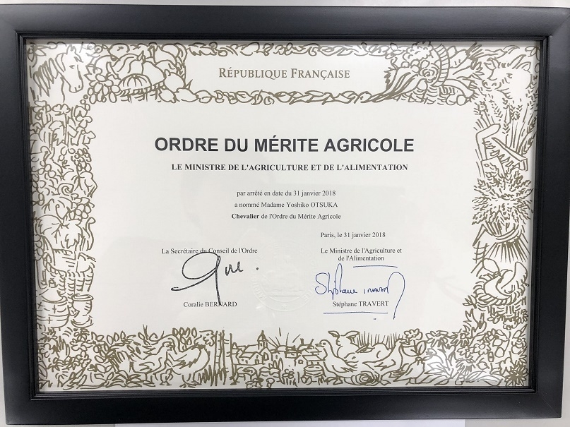 1883年に設立されたフランス共和国農業・水産大臣より与えられる勲章のひとつ。農業・水産省がフランス農産物対外輸出、海外市場での販売促進、及びフランスの食やワインの文化の普及に特に功績のあったフランス人や外国人に授与される大変名誉のある勲章です。