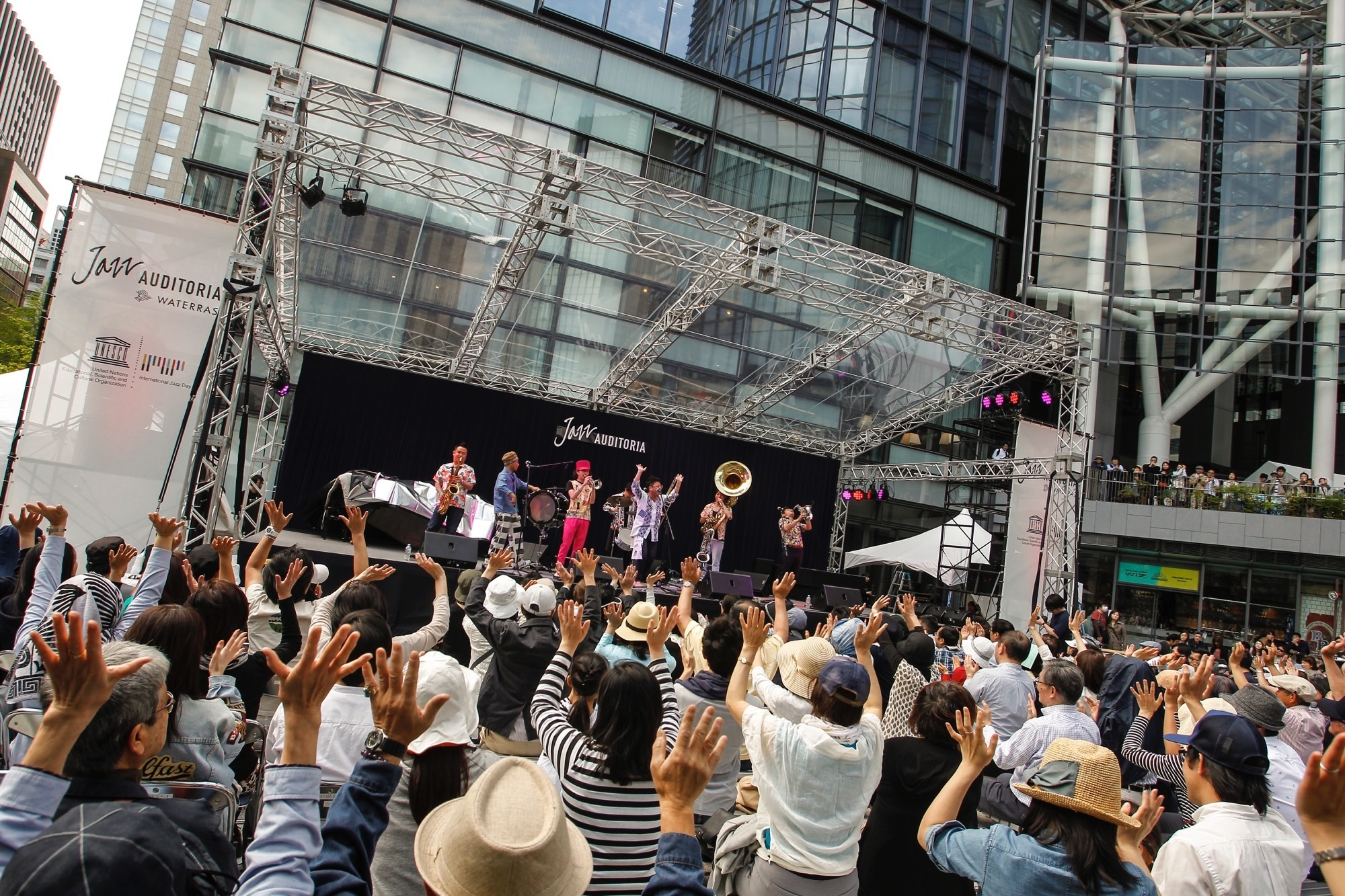 一般社団法人淡路エリアマネジメントは、老舗ジャズクラブ「ブルーノート東京」と共催した、親子で気軽に楽しめる野外ジャズイベント『JAZZ AUDITORIA 2017 in WATERRAS』を、2017年4月28日(金)~30日(日)の3日間にわたって開催しました。神田淡路町の複合施設ワテラス(WATERRAS)にて毎年入場無料で開催される本イベントは、今回で5年目を迎えました。