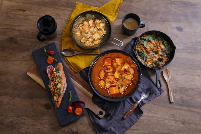 今回、発売されたレンジで1分「ビストロアヒージョ」は、「完熟トマトと焦がしにんにく風味」と「イタリアンバジル風味」の2種類。プリプリのムール貝がふんだんに入った一品は、ホクホクのじゃがいもとの相性も抜群で、本格的な味わい。ポイントは、ムール貝の出汁の魅力を引き出したコクのあるオイルにあり!口に運ぶとガーリックの風味が広がり、その後、追いかけるようにムール貝の出汁が効いたオイルの旨味を味わうことができます。残ったオイルは、ソースとしてパスタに絡めたり、バケットにつけて食べたり、最後の最後まで美味しさを余すことなくお楽しみいただけます。調理は至って簡単。美味しい匂いに誘われて、テーブルは大好きな人達の笑顔に囲まれ、会話も弾みます。