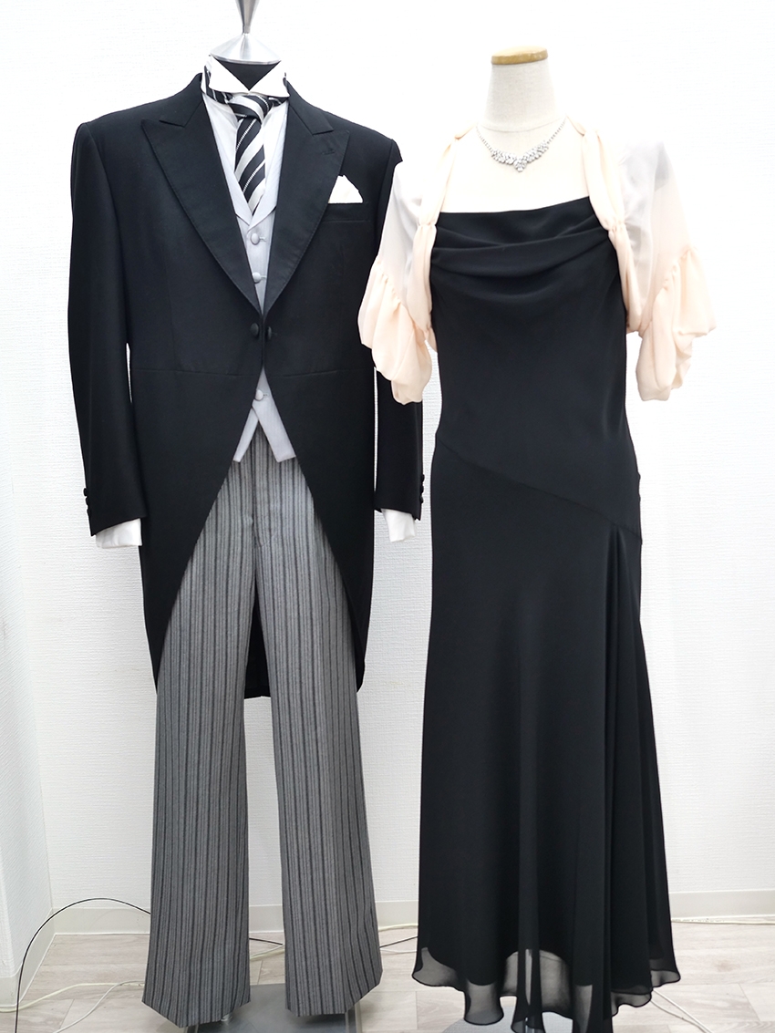 ご子息の結婚や式典、入学式、卒業式など。たえずイベントごとの多い夫婦のみなさまへは「ママドレス・パパモーニング」セットをご用意しております、また、すぐに大きくなるお子さま用のドレスもご用意しておりますので、家族で一か所にて揃えることができます。