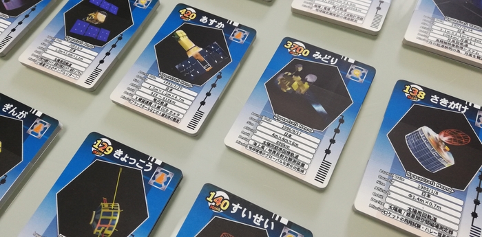 そこで、「オンライオンプラネタリウム」では、誰でもルールを知っている「かるた」を通して、日本の人工衛星の名前や姿、ミッションなどを知って頂く機会を提供しようと考え、今回試作品を作成しました。