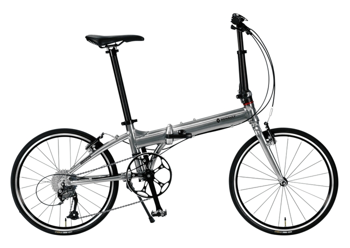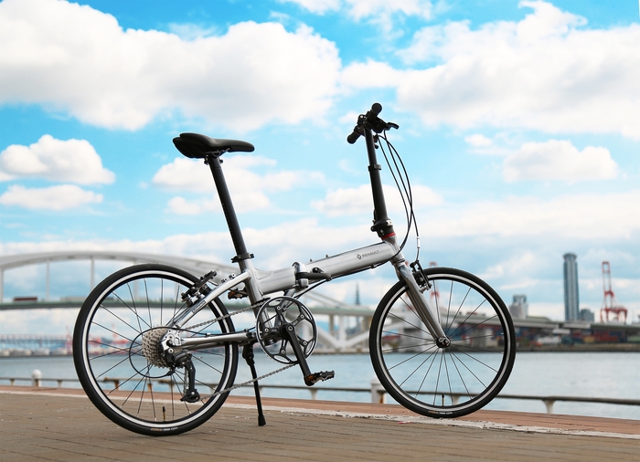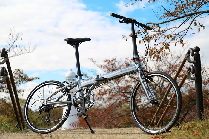 チェーンホイル52T、フリーホイル11-32TとSHIMANO ALTUSのコンビネーションに加え、軽さを追究したアルミバテッド(段付)フレームの採用や、走りの為にこだわりぬいた軽量パーツを多数装備することにより、20インチ9段変速付きでありながら、重量約8.9kgを実現しています。