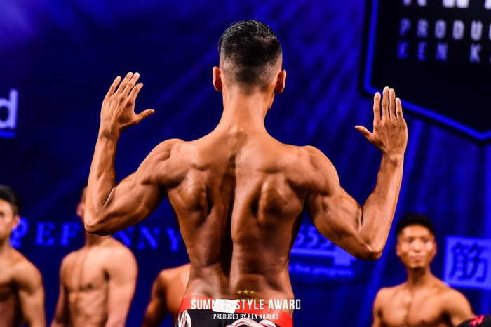チーフトレーナーの村松健太(むらまつ・けんた)は、11月にSUMMER STYLE AWARDの新人戦に出場し、SPORTS MODEL(BEASTY)tall部門で準グランプリとなりました。身長176cmの彼は今年3月の段階で86kgでしたが、69kgまで減量し、筋肉を付けて大会に出場。学生時代にサッカー・スノーボードで鍛えた脚の筋肉を評価され、実行委員会代表を務める金子賢さんにはポージングセンスを認められました。