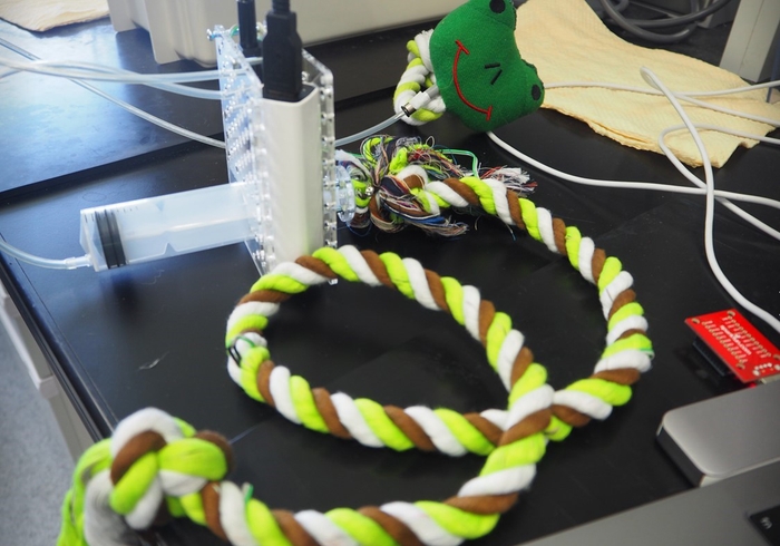 「これならペットのイヌが遊び感覚で測定できます。数値化した『かむ力』と『引っ張る力』の変化からペットフレイルの早期診断が可能になります」と水野教授。