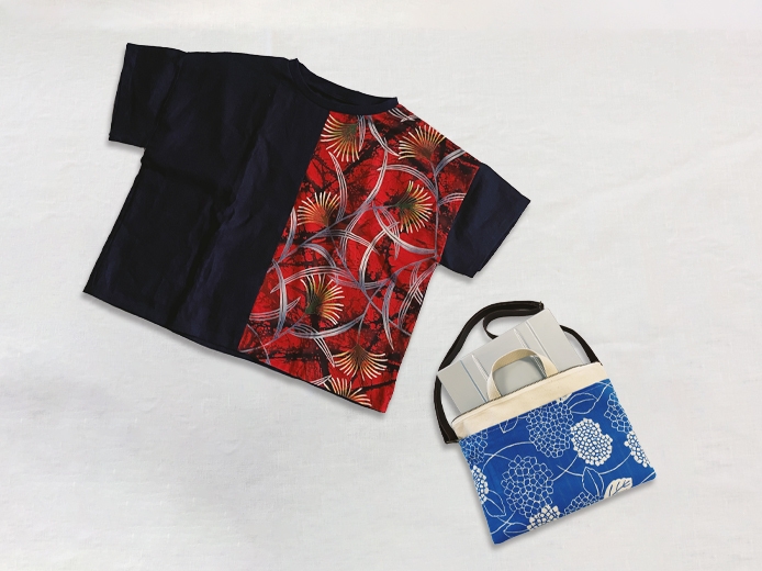 本ワークショップは、「良いものを永く使う」サステナブルな暮らしの提案がテーマです。家庭にある唯一の生産財と呼ばれ、製品自体がサステナブルとしての特性を持つミシンと、竺仙の生地生産の過程で生まれる、浴衣の正規商品として表に出ない規格外の反物を使用して世界にひとつだけのオリジナル作品を作ります。