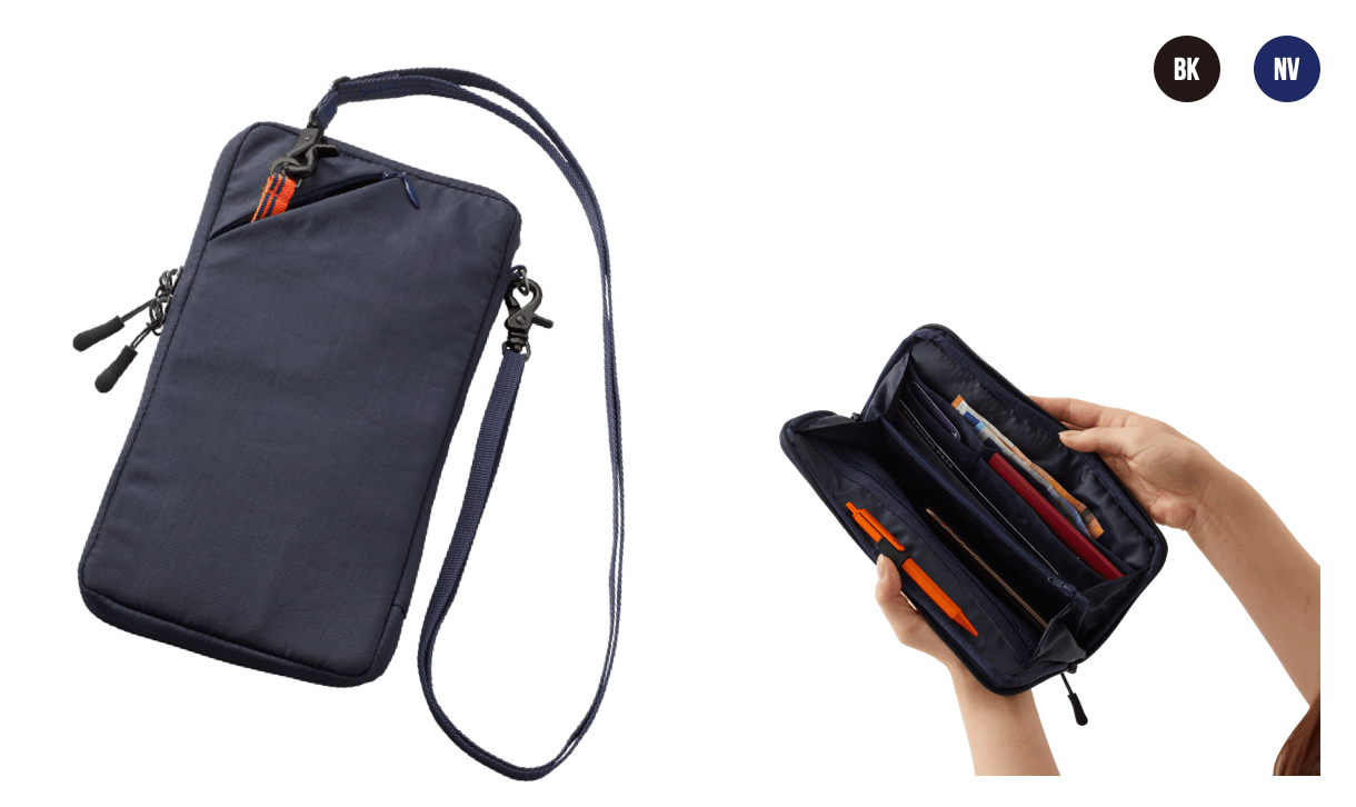特徴:パスポート、クレジットカード、キャッシュ、スマートフォン、チケットなど、空港や旅先で必要不可欠なものを