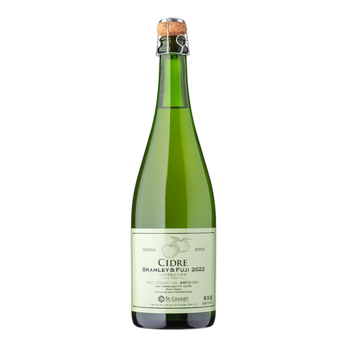 飯綱町の丘の上アップルミュージアムに植えられているイギリス原産の青りんご「ブラムリーズシードリング」と「ふじりんご」をブレンドし、伝統製法(瓶内二次発酵)で醸造したシードルです。青りんごの爽やかな香りと優しい酸味に、ふじの甘い香りや果実感が混ざり合い、すっきりとした口当たりながらも深みのある余韻を感じることができます。