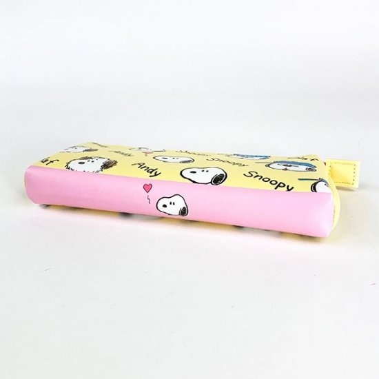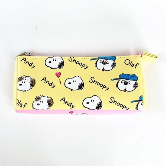 春からの新学期にピッタリな、パステルカラーのペンポーチが新登場です。イエローにスヌーピー&オラフ&アンディの顔が並ぶデザインで、底の部分がバイカラーになっています。