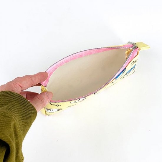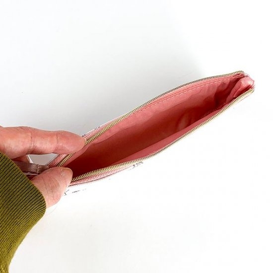 内側もピンクで、ガーリーテイストなペンポーチです。