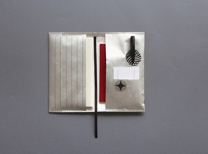 ペンや名刺をスリットに入れて手帳のように。パスポートサイズでしたら収納可能です。