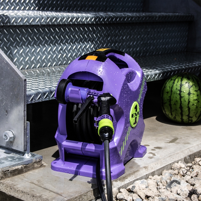 「エヴァ」初号機をイメージした 「A.T.FIELD自動巻取ホースリール」発売 ~エヴァンゲリオンのワークブランドと散水用品メーカーがコラボ~